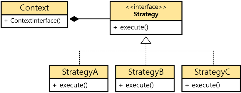 전략패턴이란 동적으로 알고리즘을 교체할 수 있는 구조를 말한다. 알고리즘 인터페이스를 정의하고, 각각의 알고리즘 클래스별로 교체 사용 가능하게 한다. (앞선 Connectionmaker 인터페이스구조가 이에 해당)