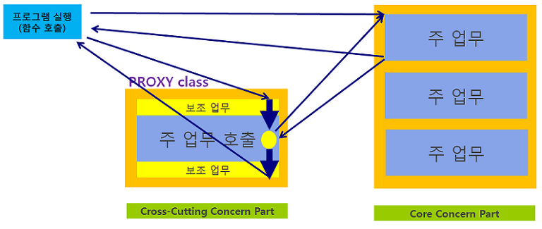 핵심 기능과 부가기능을 나누어 사용할 수 있는 이유는 AOP가 proxy를 이용하기 때문이다.