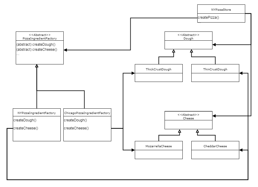 PizzaStore -> Pizza Pizza <- NYStyleCheesePizza Pizza <- ChicagoStyleCheesePizza Pizza <- NYStyleVeggiePizza |