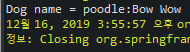 사용자는 animal.xml에서 정의한 대로 dog, cat, petOwner의 객체를 먼저 생성하고, 이후 dog를 petOwner에 주입하였으니 결과 화면에는 dog가 보이게 된다 만약 cat을 주입하고 싶다면 constructor-arg의 ref = cat으로 수정해주면 된다
