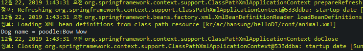<bean id="dog" class="kr.ac.hansung.helloDI.Dog">