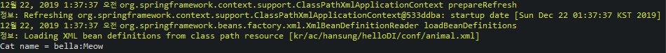 <bean id="cat" class="kr.ac.hansung.helloDI.Cat">