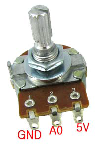 가변저항은 다음과 같이 GND, A0, 5V로 구성되어있다